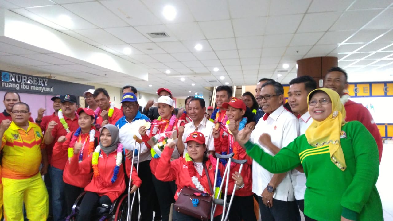 Para atlit ini tiba di Bandara SSQ II pada Minggu sore (14/10/2018) sekira pukul 16.10 wib, tampak hadir menyambut kedatangan para atlit ini antara lain Kadispora Provinsi Riau beserta staf, Ketua NPC (National Paralimpic Commitee) Riau, Kadispora Kab. Kampar Santoso M. Pd, Ketua KONI Kampar Ir. Abdul Gafar, Ketua NPC Kampar Zulkifli serta Camat Salo Minda SH.