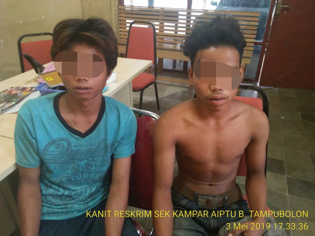 Kedua tersangka kasus penggelapan yang diamankan pihak Kepolisian ini adalah IR (Lk 19) dan MA (Lk 22), keduanya warga Desa Balung Kec. XIII Koto Kampar.