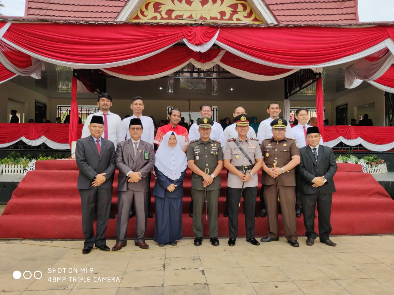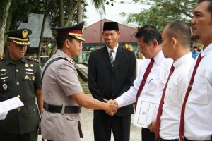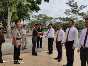 Bertindak selaku Inspektur Upacara Dandim 0313/ KPR Letkol Inf Aidil Amin SIP, tampak hadir Kapolres Kampar AKBP Asep Darmawan SH, SIK, Kajari Kampar Suhendri SH, MH, Ketua PN Bangkinang Unggul Tri Esthi Muljono SH, MH, Kakan Kemenag Kab. Kampar Alfian M.Ag dan Ketua Pengadilan Agama Kabupaten Kampar.
