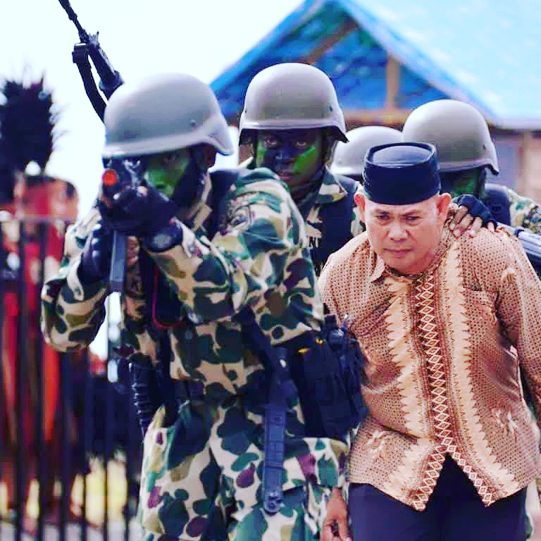 serta Wali Kota Manado Vicky Lumentut kompak bertepuk tangan. Bahkan penonton yang berada di tribun sebelah kiri berdiri memberikan aplaus setelah sandera dibebaskan dan sarang musuh diledakkan.