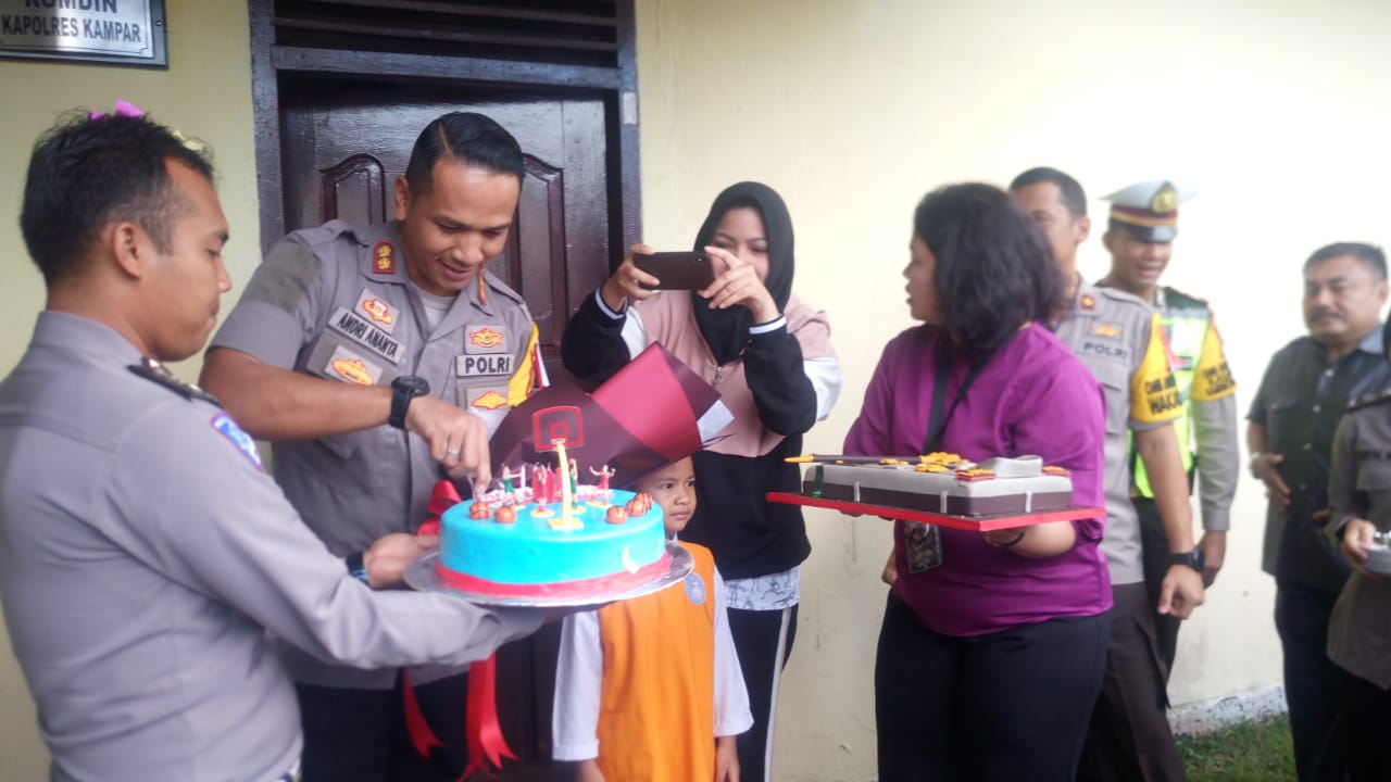 BANGKINANG KOTA, ULASFAKTA.Com,- Selasa pagi (2/4/2019), jelang pelaksanaan apel pagi segenap anggota Polres Kampar mengadakan acara Surprise Ulang Tahun untuk Kapolres Kampar AKBP Andri Ananta Yudhistira SIK, MH.