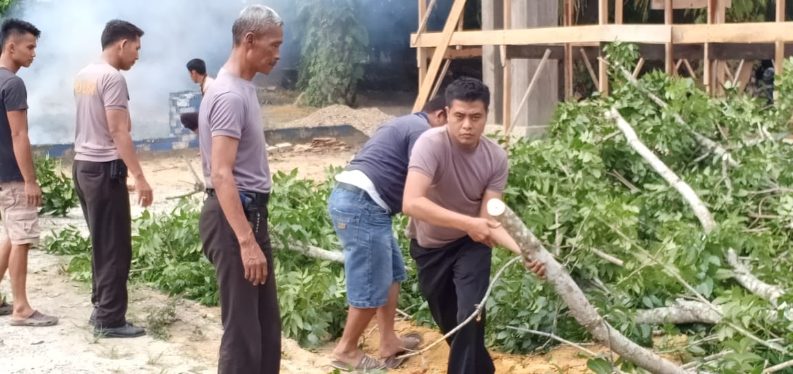 Kegiatan bersih-bersih di lingkungan Masjid ini dipimpin Panit Binmas Polsek Tapung Aiptu Murherianto bersama 12 orang anggota Polsek Tapung.