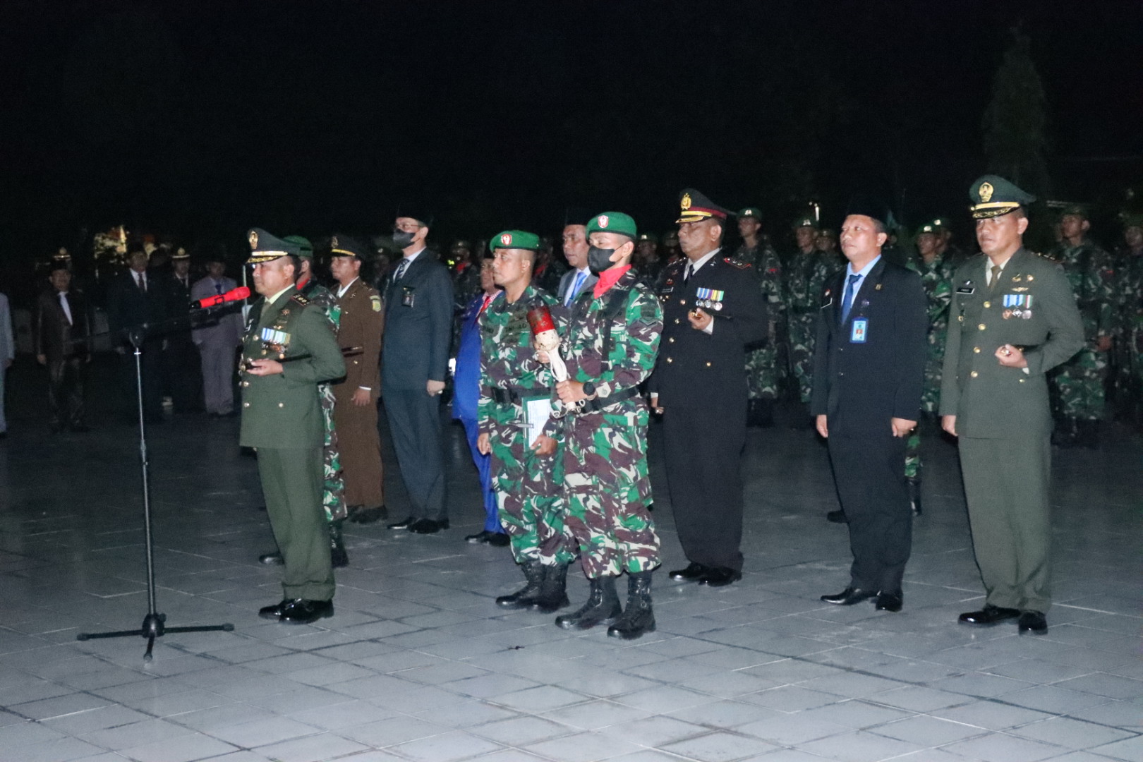 Komandan Kodim 0313/KPR bertindak sebagai pemimpin renungan suci tersebut, dalam arahanya semua pasukan diminta untuk mengheningkan cipta dalam mengenang jasa para pahlawan.