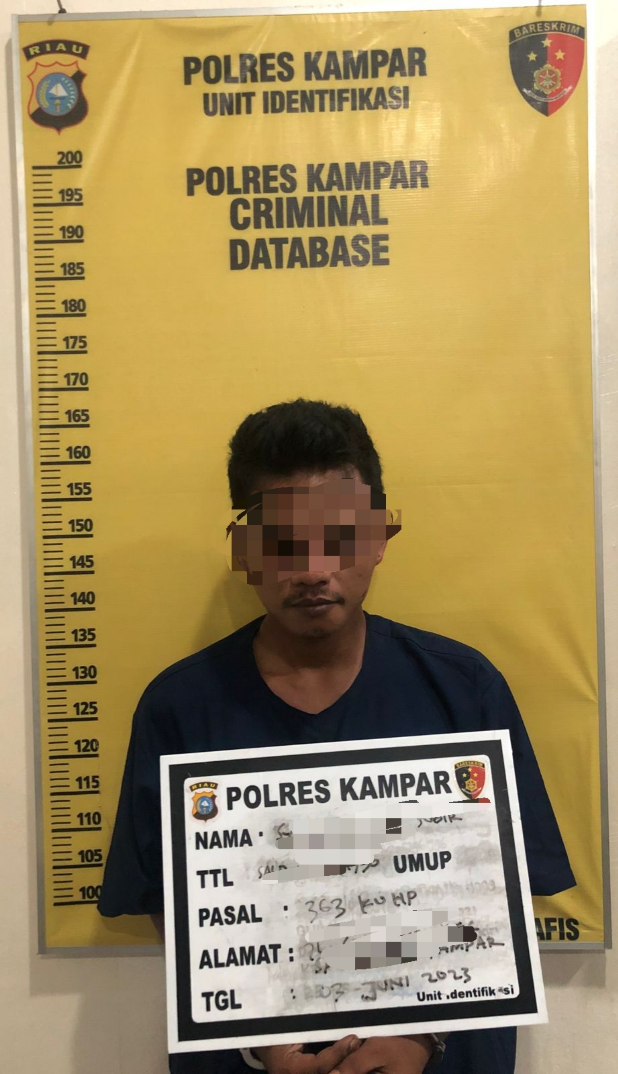 Pelaku adalah SU (32) warga Desa Sialang, Kecamatan Salo, Kabupaten Kampar. Ia melakukan aksi kejahatannya di Jl. Perumnas Desa Salo, Kecamatan Salo, pada Minggu (21/5/2023) sekira pukul 01.00 WIB.