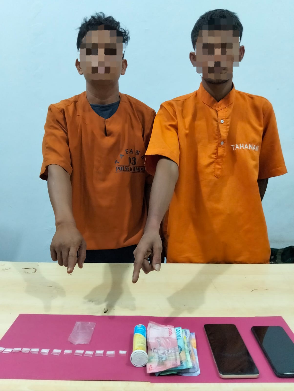 Kapolres Kampar AKBP Boby Putra Ramadhan S melalui Kapolsek Kampar AKP Asdisyah Mursyid, menyampaikan bahwa dua orang tersangka berhasil diamankan, yaitu MI (27) dan MP (34). Keduanya diduga berperan sebagai pengedar narkotika jenis shabu-shabu.