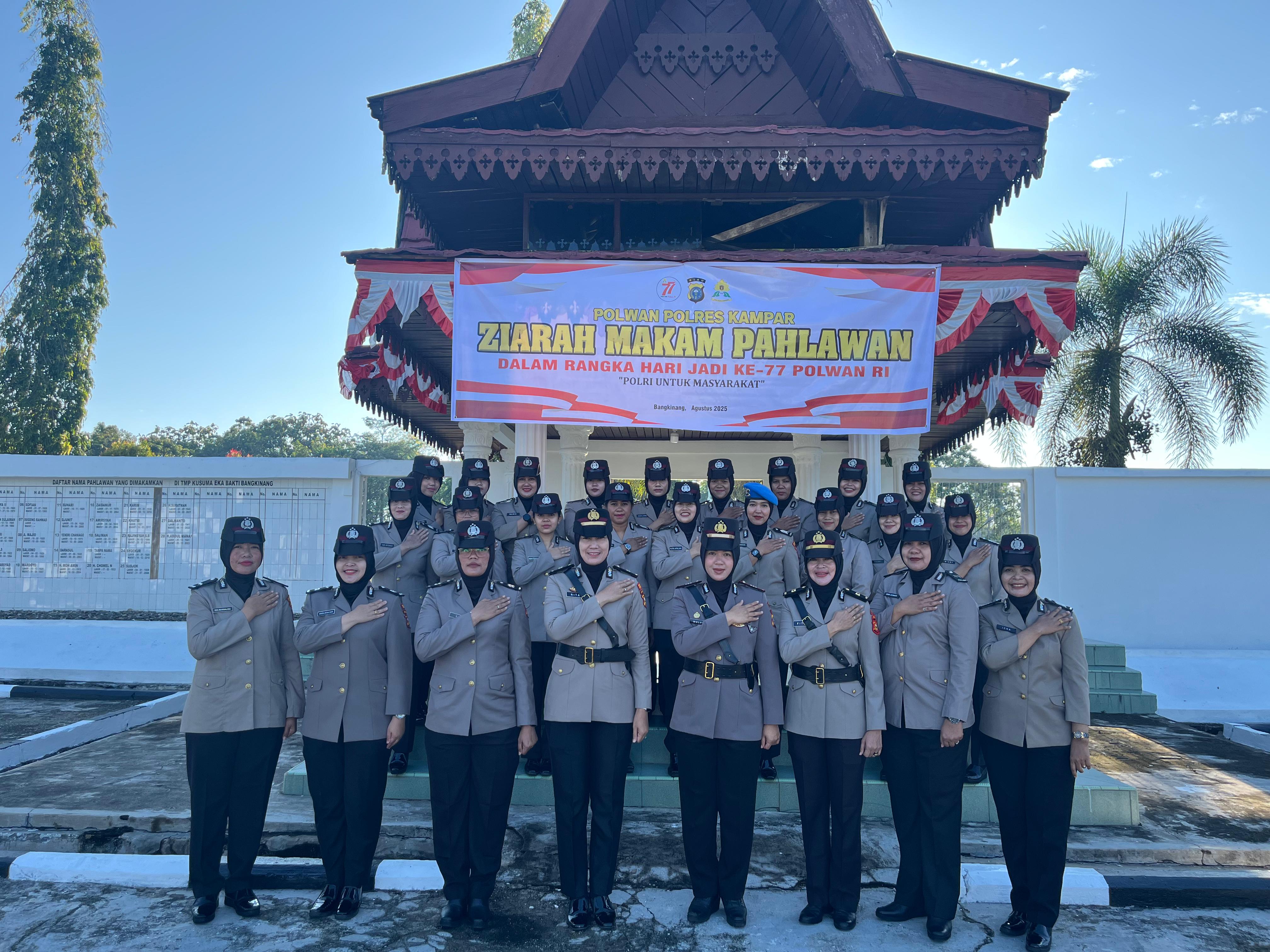 BANGKINANG – Dalam rangka memperingati Hari Jadi Polwan ke-77, jajaran Polwan Polres Kampar melaksanakan ziarah ke Taman Makam Pahlawan (TMP) Kusuma Eka Bhakti Bangkinang, Selasa (26/08/2025). Kegiatan ini merupakan wujud penghormatan kepada para pendahulu dan pahlawan yang telah berjasa bagi Polri dan bangsa Indonesia.