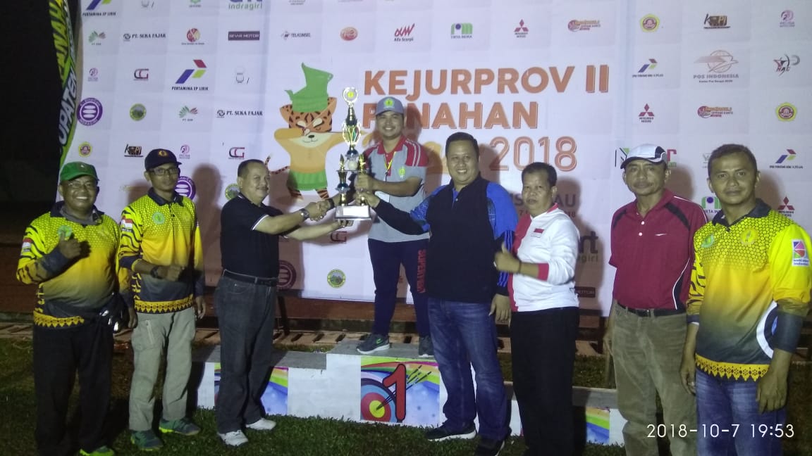 Sekretaris Umum PERPANI Kampar Delvin Rawadi yang mewakili Ketua PERPANI Kampar menerima Piala Juara Umum Kejurda II Panahan Riau 2018 di INHU yang diserahkan langsung oleh Sekretaris Umum Perpani Riau, Drs. Isnorijal MM dan berpesan agar Kampar dapat terus mempertahankan prestasinya, dengan didampingi Ketum KONI Inhu, Supri Handayani, SE.