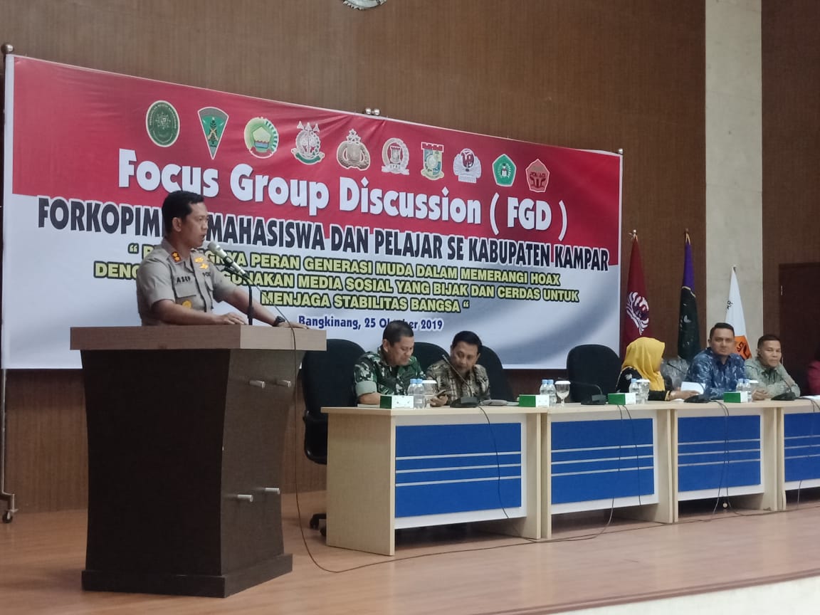 BANGKINANG KOTA, ULASFAKTA.Com – Jumat sore (25/10/2019), bertempat di Aula Kantor Bupati Kampar digelar Acara Focus Group Discussion (FGD) bersama Forkopimda, Mahasiswa dan Pelajar se-Kabupaten Kampar.