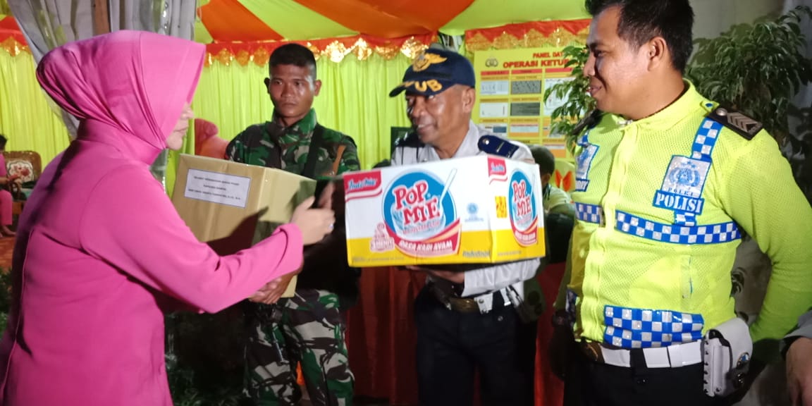 Mengakhiri kunjungannya di Pos Pam ini, Kapolres Kampar dan Ketua Cabang Bhayangkari memberikan bingkisan berupa paket makanan dan minuman ringan untuk para personel yang tengah bertugas ini.