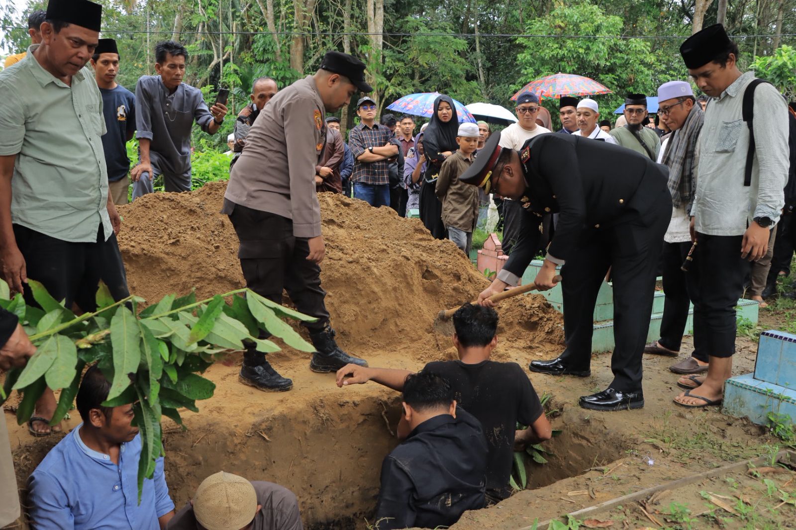 Di liang lahat, upacara pemakaman kembali dipimpin oleh Kapolres Kampar sebagai Inspektur Upacara, didampingi Kapolsek Kampar selaku Perwira Upacara, dan IPTU Irwan Fadhilah sebagai Komandan Upacara. Prosesi penghormatan terakhir dengan tembakan salvo ke udara mengiringi penurunan jenazah ke peristirahatannya yang terakhir. Kapolres secara simbolis melakukan penimbunan liang lahat, dilanjutkan oleh keluarga dan petugas makam.