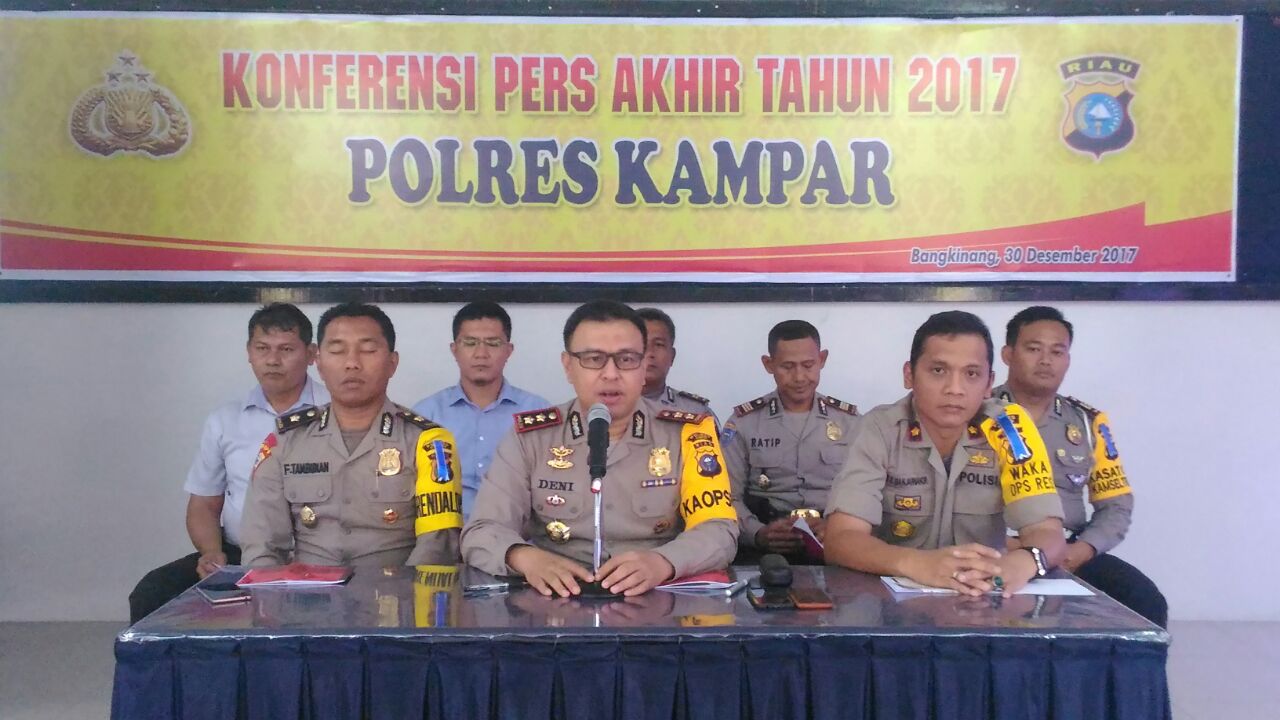 Konferensi Pers Akhir Tahun 2017, Kapolres Kampar Sampaikan Penurunan Angka Kriminalitas