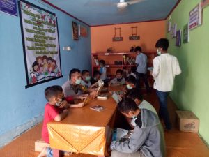SIAK HULU, ULASFAKTA.Com,-Manfaatkan waktu libur sekolah sehubungan memburuknya kondisi udara akibat kabut asap, sejumlah pelajar Sekolah Dasar di Desa Teratak Buluh Kec. Siak Hulu, Senin siang (23/9) mengunjungi Rumah Baca Bhayangkara Binaan Bhabinkamtibmas Desa Teratak Buluh Brigadir David Gusmanto.
