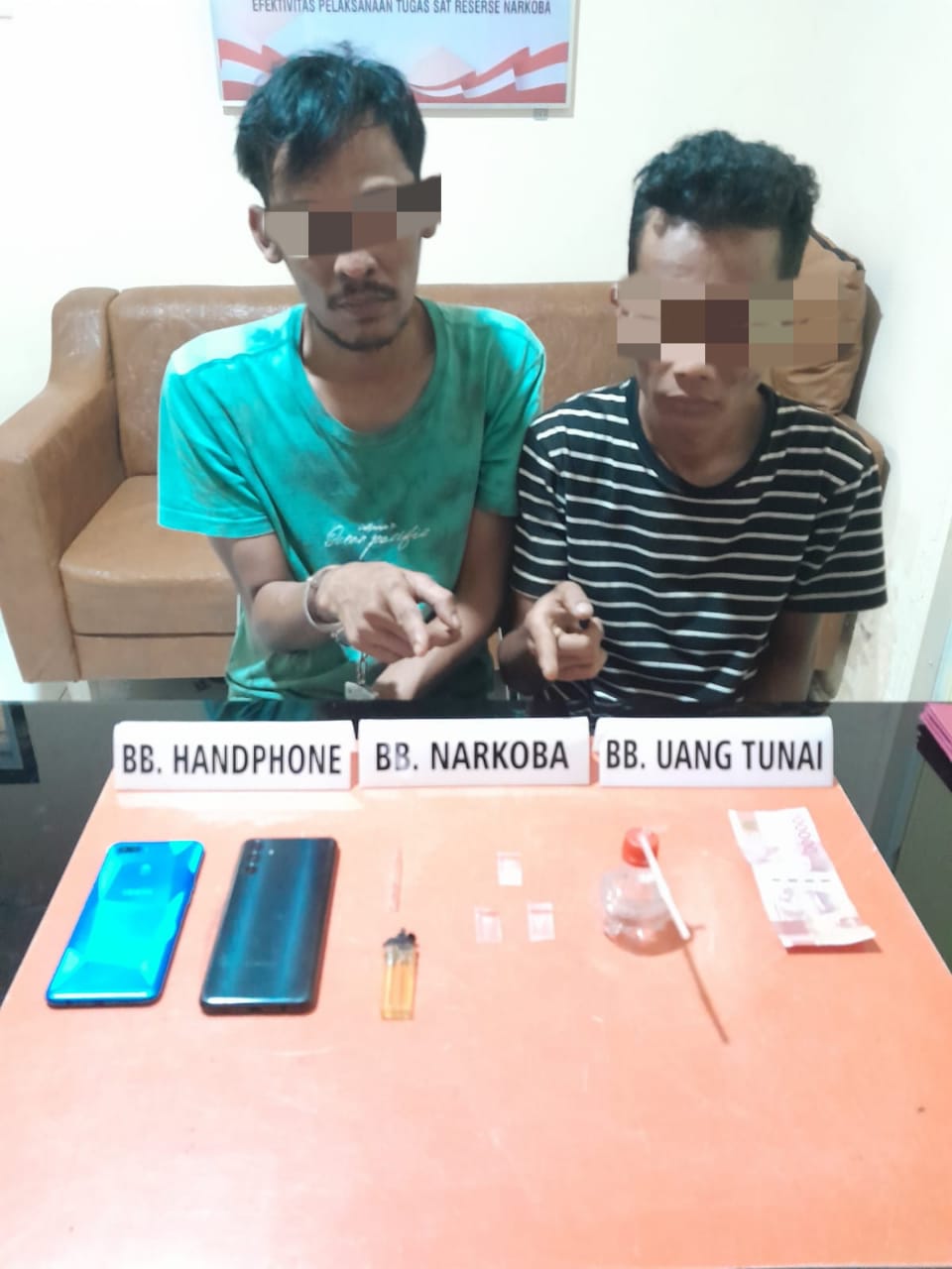 Barang bukti yang berhasil diamankan, satu paket Narkoba jenis shabu yang dibungkus dengan plastik bening, (Bruto 0.15 Gram), HP Oppo, HP Samsung, bong, 2 plastik klip, kaca pirex, mancis, uang tunai Rp 100 ribu dan sepeda motor merk Karisma HM 6408 FQ.