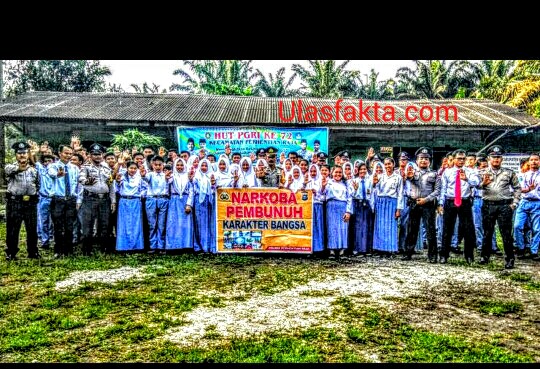 PERHENTIAN RAJA, ULASFAKTA.com – Senin pagi (26/2/2018), Kapolsek Perhentian Raja Iptu Asmardi beserta personil Polsek mengadakan kegiatan Police Goes to School di SMK Negeri I di Desa Hang Tuah Kec. Perhentian Raja.