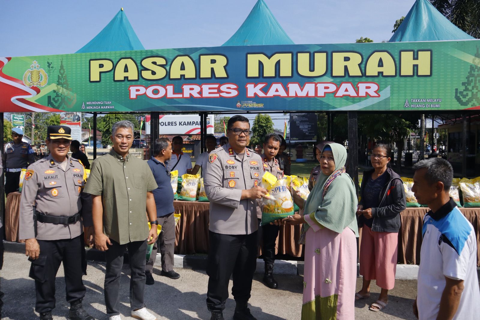 Kapolres Kampar, AKBP Boby Putra Ramadhan, S., dalam sambutannya menjelaskan bahwa pasar murah ini dilaksanakan berdasarkan arahan Pemerintah Pusat untuk mendistribusikan beras cadangan pemerintah (CBP) atau beras Stabilisasi Pasokan dan Harga Pangan (SPHP) kepada masyarakat luas.