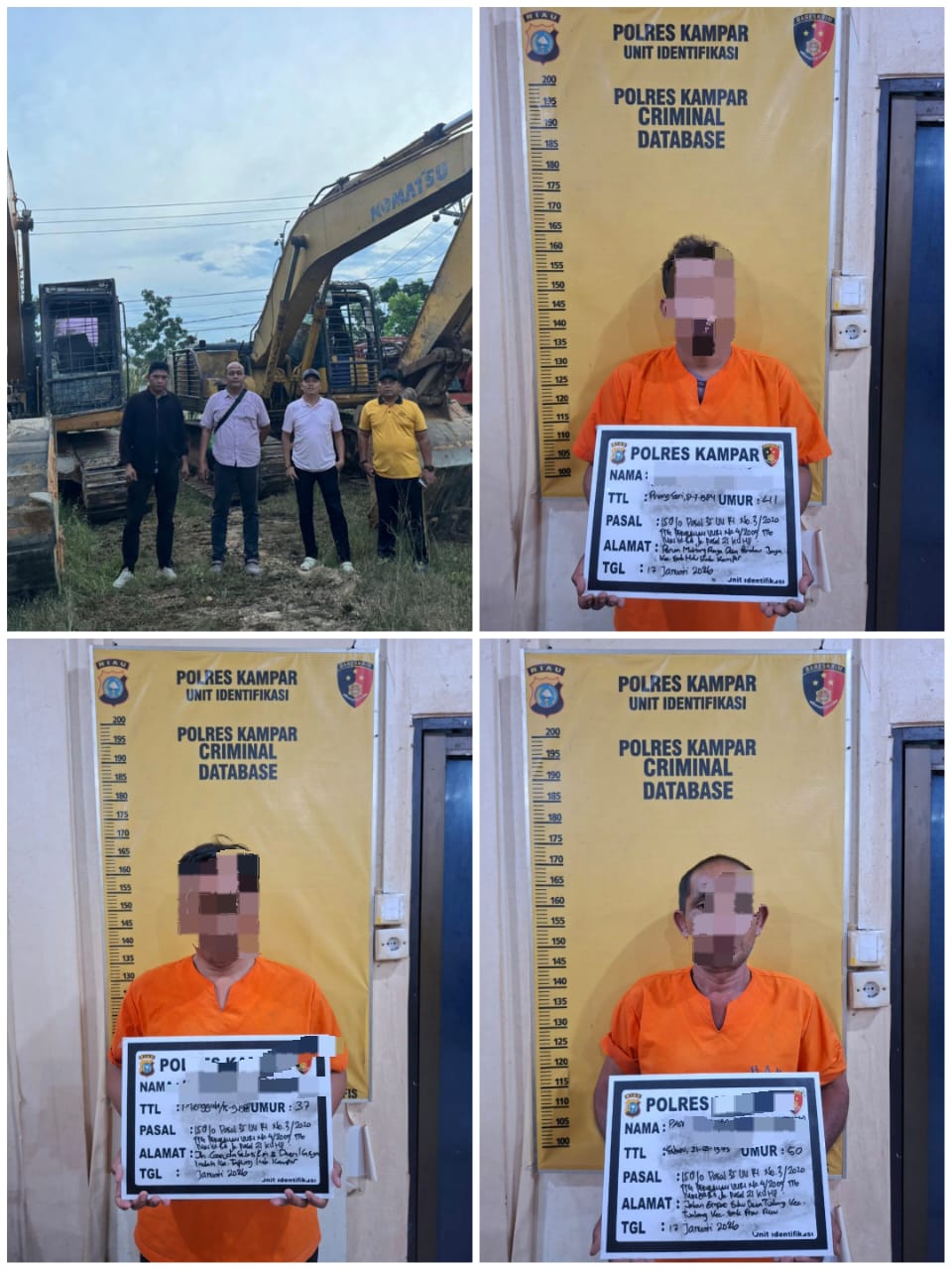 Ketiga pelaku yang diamankan adalah NK (38), pengawas lapangan, JS (42), operator alat berat, PS (50), operator alat berat.