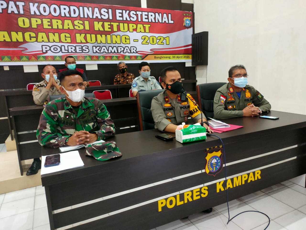 Dari hasil Rakor ini bahwa masing-masing Stakeholder siap mendukung pelaksanaan Operasi Ketupat Lancang Kuning 2021, selanjutnya disepakati akan didirikan 4 Pospam dengan lokasi di Lapangan Merdeka Bangkinang, Simpang Petapahan Tapung, Desa Tanjung Alai Kec. XIII Koto Kampar dan Desa Rimbo Panjang Kec. Tambang, dimana 2 pos terakhir ini berdampingan dengan Pos Penyekatan yang sudah didirikan sebelumnya.