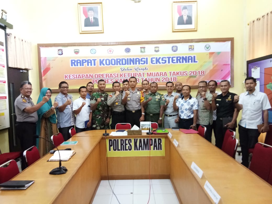 BANGKINANG KOTA, ULASFAKTA.com – Kamis (31/5/2018) pukul 09.45 wib, di ruang data Polres Kampar dilaksanakan Rapat Koordinasi Eksternal dalam rangka kesiapan Operasi Ketupat Muara Takus 2018 Polres Kampar.