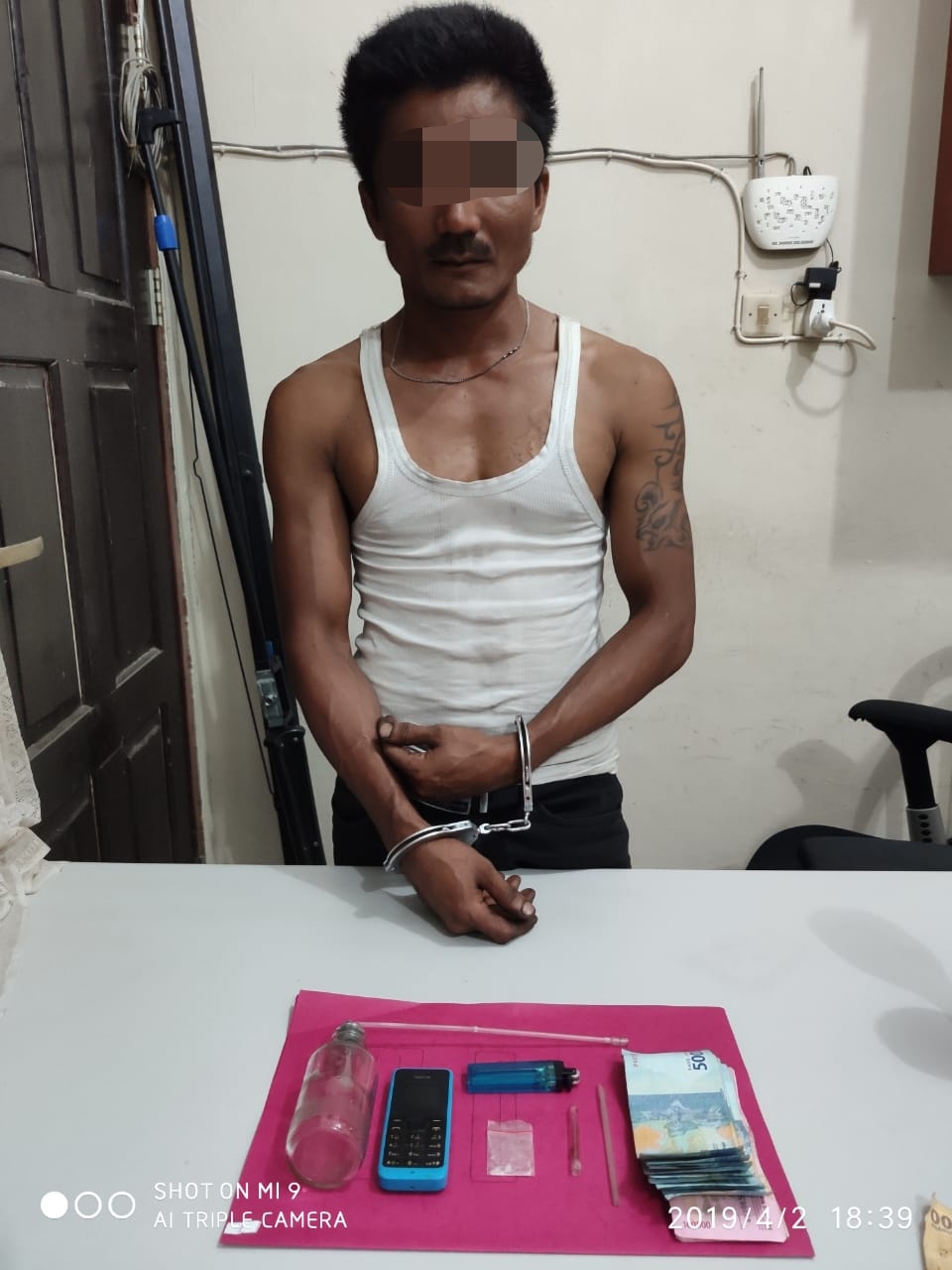Petugas langsung mengamankan pria ini dan kemudian melakukan penggeledahan, dari hasil penggeledahan ditemukan barang bukti narkotika jenis shabu terbungkus plastik bening serta beberapa barang bukti lainnya terkait kasus ini.