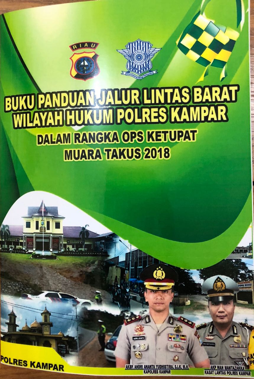 KAMPAR, ULASFAKTA.com – Untuk membantu masyarakat pengguna jalan saat perjalanan mudik ketika melewati Jalur Lintas Barat, Polres Kampar melakukan Inovasi dengan menerbitkan “Buku Panduan Jalur Lintas Barat Wilayah Hukum Polres Kampar dalam rangka Operasi Ketupat Muara Takus 2018”.