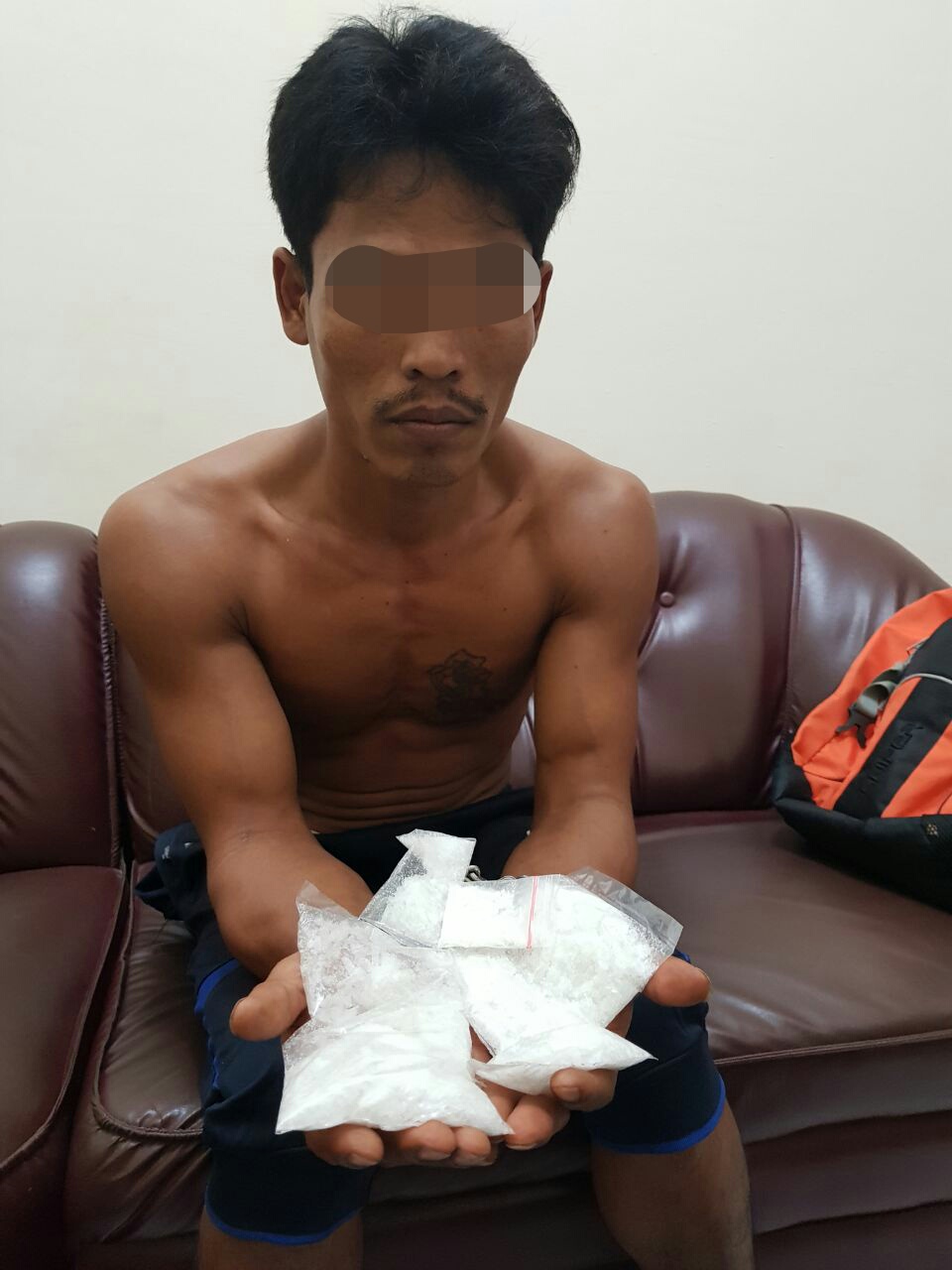 Petugas berhasil mengamankan tersangka SU saat berada dirumahnya, selanjutnya disaksikan ketua RT setempat sdr. Paimin dilakukan penggeledahan terhadap pelaku dan rumahnya, dari hasil penggeledahan ini ditemukan didalam tas berwarna hitam milik pelaku 1 paket sedang narkotika jenis shabu terbungkus plastik bening.