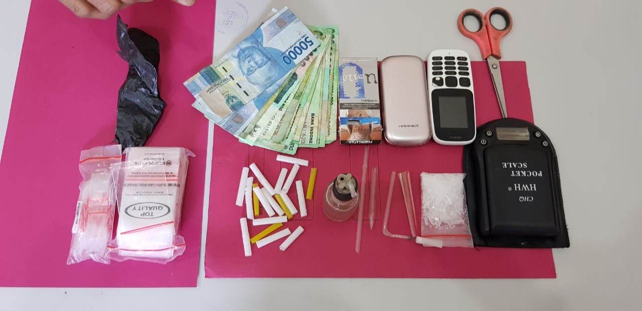 Dari pelaku diamankan sejumlah barang bukti antara lain 1 paket sedang narkotika jenis shabu dengan berat 10,63 gram, 1 unit timbangan digital, 2 unit Hp, 1 buah bong dan beberapa barang bukti lainnya terkait kasus ini.