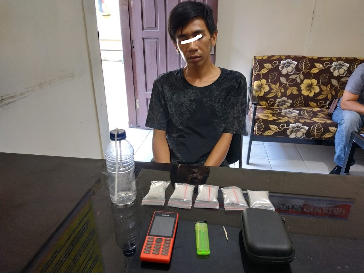 Saat itu AD berusaha kabur dan terlihat membuang sesuatu namun berhasil diamankan petugas, dari tersangka AD ini didapati barang bukti 9 paket shabu dengan berat 3,06 gram.