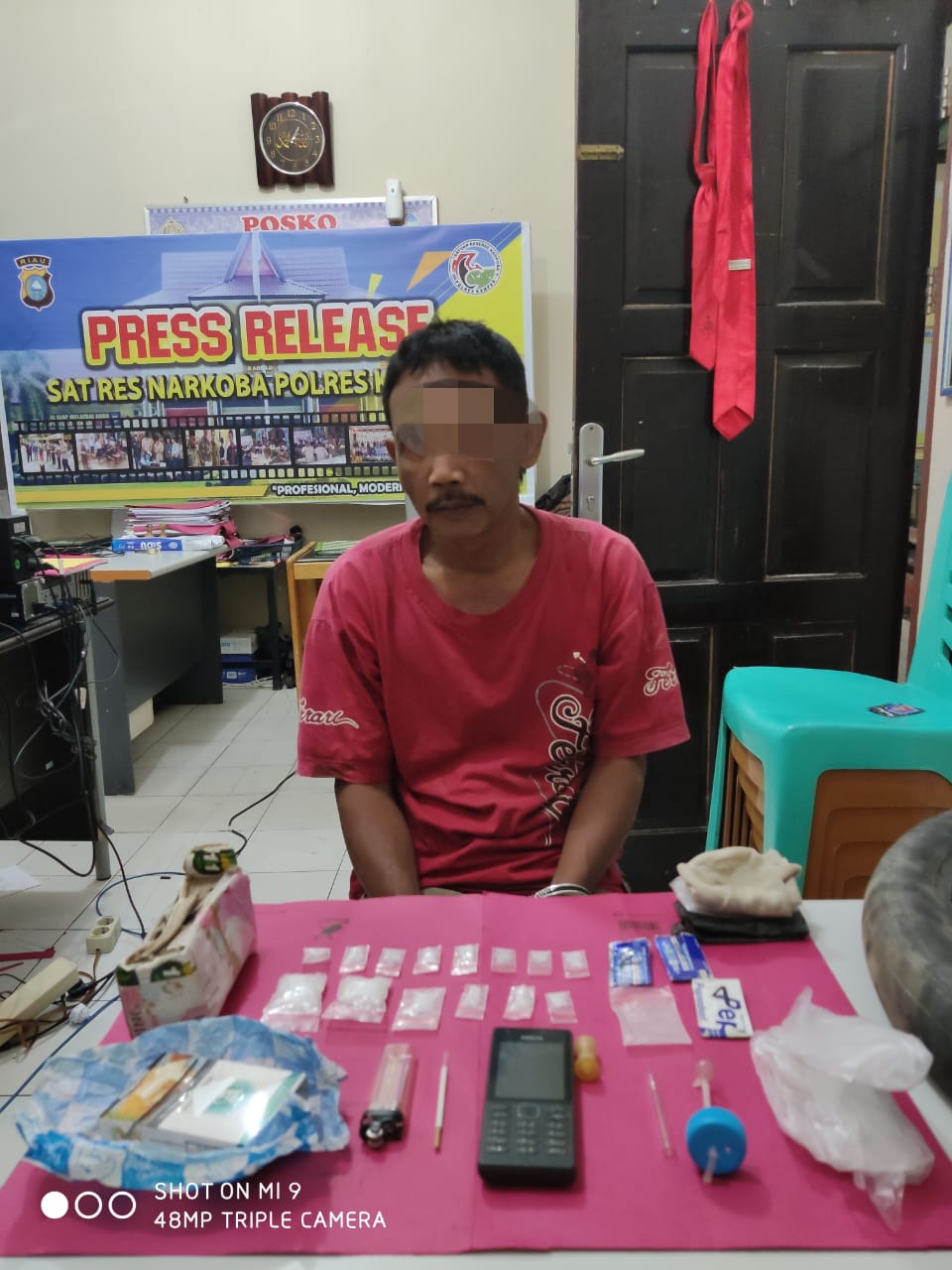 Bersama pelaku ditemukan barang bukti 14 paket narkotika jenis shabu dengan berat kotor 15,44 gram, 1 unit handphone merk Nokia warna hitam dan 1 unit sepeda motor yang digunakan pelaku.
