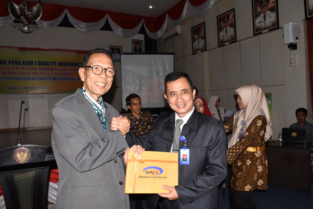 Bangkinang Kota,ULASFAKTA.COM – Bupati Kampar Azis Zaenal menghadiri acara Penyerahan Hasil penilaian (Quality Assurance) Sistem Pengendalian Intern Pemerintah (SPIP), level 3 Pemerintah Kabupaten Kampar yang diselenggarakan oleh Badan Pengawasan Keuangan dan Pembangunan (BPKP) Provinsi Riau di Aula Rumah Dinas Bupati Kampar, Kamis (11/10)