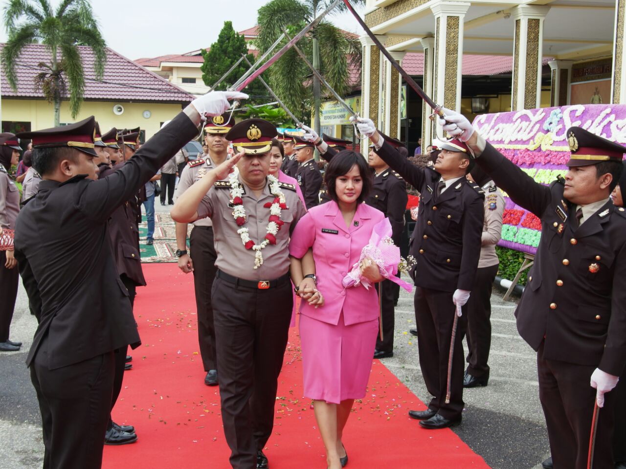 Sejumlah Pejabat Polres Kampar dan personel lainnya termasuk Bhayangkari yang melepas AKBP Deni Okvianto beserta Istri, tak kuasa menahan haru dan linangan air mata saat bersalaman satu persatu disepanjang jalan menuju gerbang keluar Mapolres Kampar.