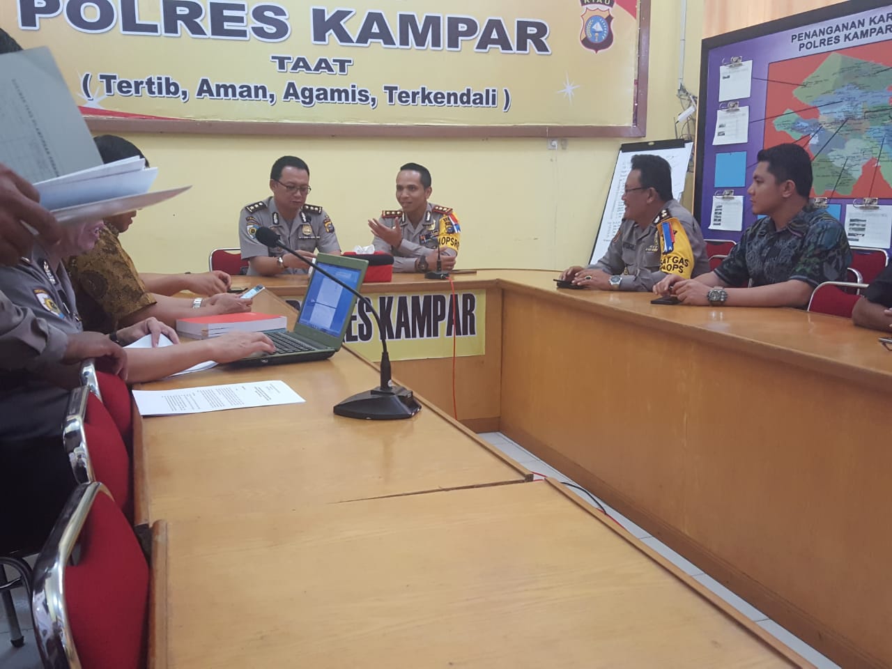 Kedatangan Tim disambut langsung oleh Kapolres Kampar AKBP Andri Ananta Yudhistira SIK MH beserta Pejabat Utama Polres Kampar, selanjutnya Tim melakukan asistensi bertempat diruang Data Polres Kampar yang dihadiri Kapolres, Waka Polres, Para Kabag, Kasat, Kasi dan Kapolsek Jajaran serta beberapa personel lainnya.