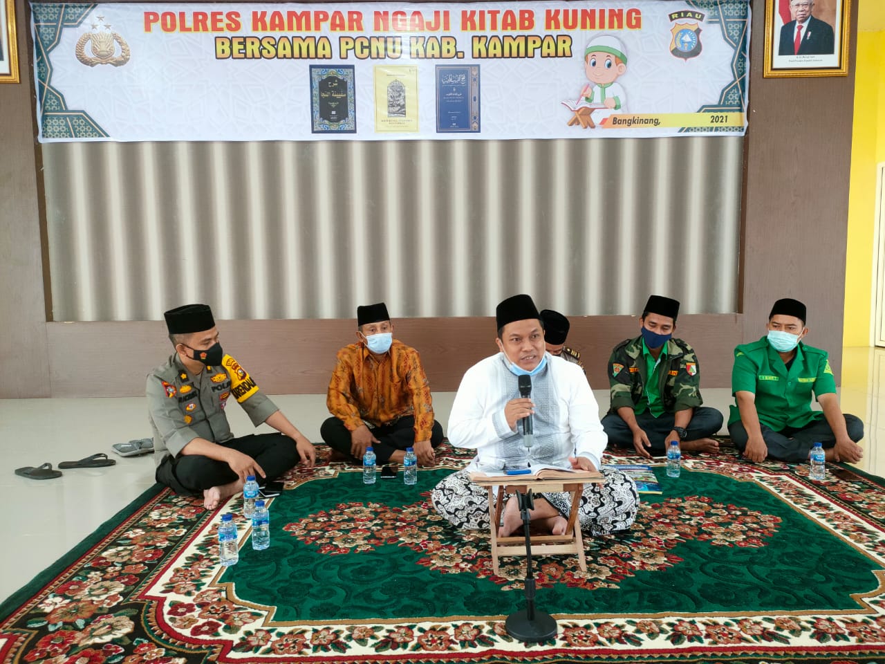Kegiatan Pengajian Kitab Kuning untuk pertama kalinya di Polres Kampar ini dipandu oleh Ustad Kholid Junaidi MPDi yang merupakan Pimpinan Pondok Pesantren Hidayatul Mibtadi’in.