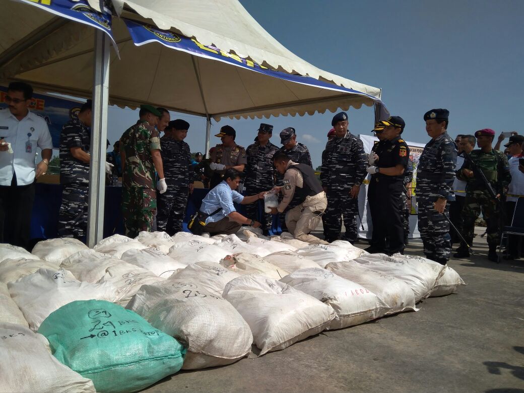 Barang bukti yang berhasil diamankan yaitu Narkoba berjenis sabu-sabu seberat lebih dari satu ton. Narkoba tersebut dibawa oleh Kapal MV Sunrise Glory dimana disamarkan diantara tumpukan karung beras.