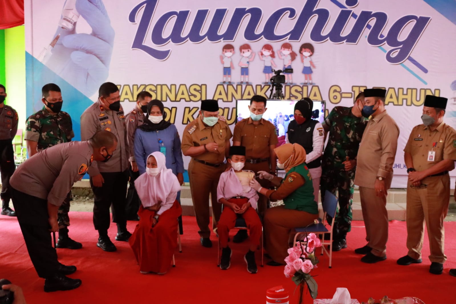 Acara Launching Vaksinasi anak Usia 6-11 Tahun di Kabupaten Kampar ini dipusatkan di SD Muhammadiyah 019 Kecamatan Bangkinang Kota, dihadiri Waka Polda Riau Brigjen Pol Drs. Tabana Bangun MSi, didampingi Bupati Kampar H. Catur Sugeng Susanto SH, MH.
