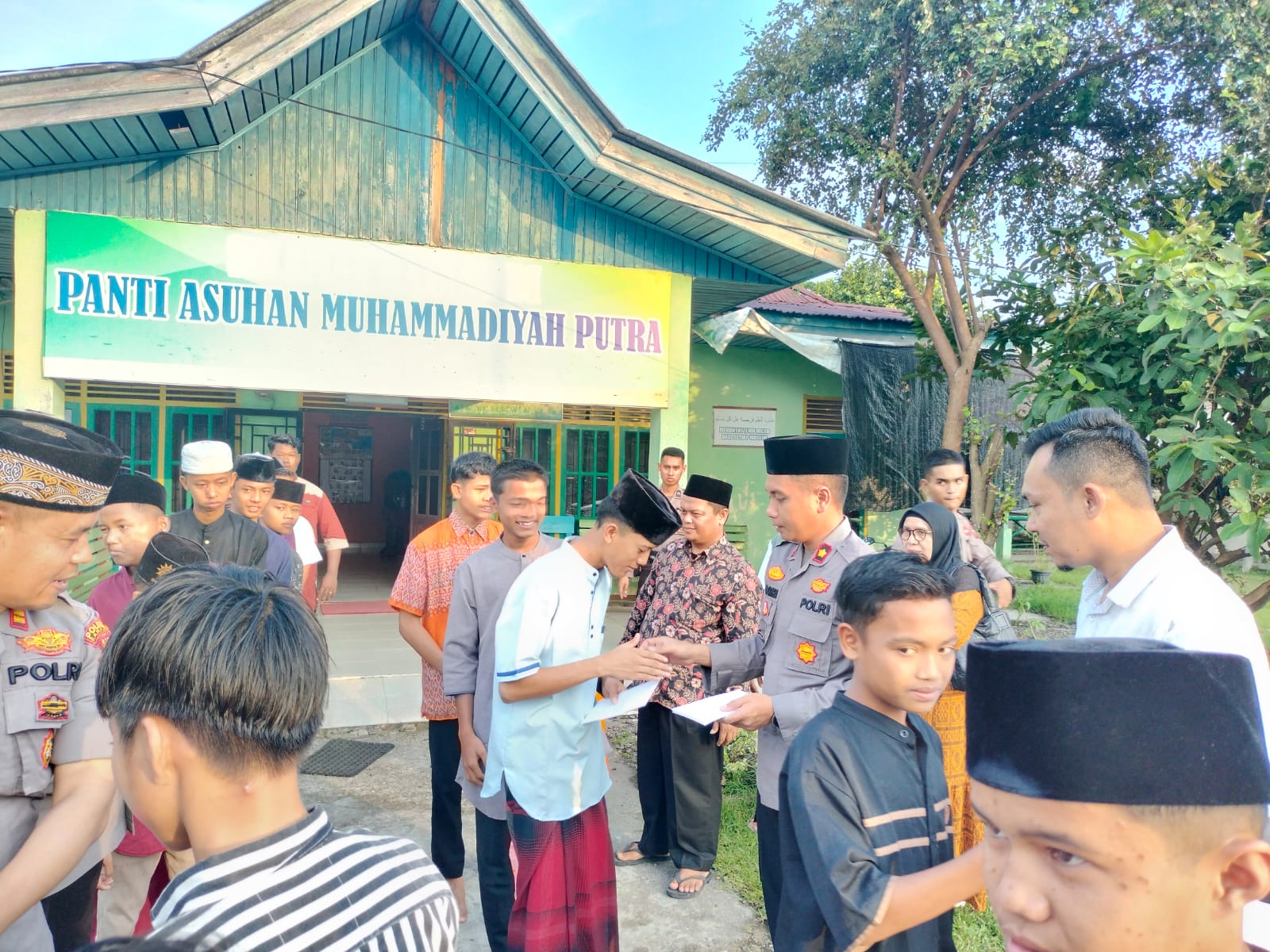Santunan dan takjil diterima langsung oleh pengurus panti putra Muhammadiyah Kuok bapak Manahan dan anak-anak panti putra.