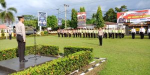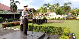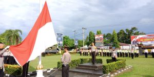 Bertindak selaku Inspektur Upacara Kapolres Kampar yang diwakili Waka Polres Kompol B.E. Banjarnahor SIK, MH dan diikuti Pejabat Utama Polres Kampar, Para Perwira dan Bintara serta segenap ASN Jajaran Polres Kampar.